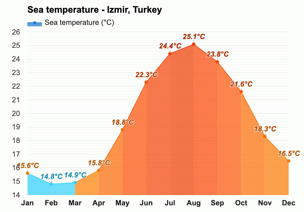 آب و هوا ازمیر مدیترانهای است. زمستانهای ملایم ...